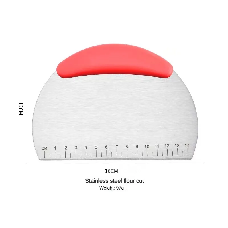 Specification: 1Piece Flour Cutter Stainless Steel with Scale Flour Dough Cutter Rice Noodles Scraper Household Kitchen Cake Baking Scraper
