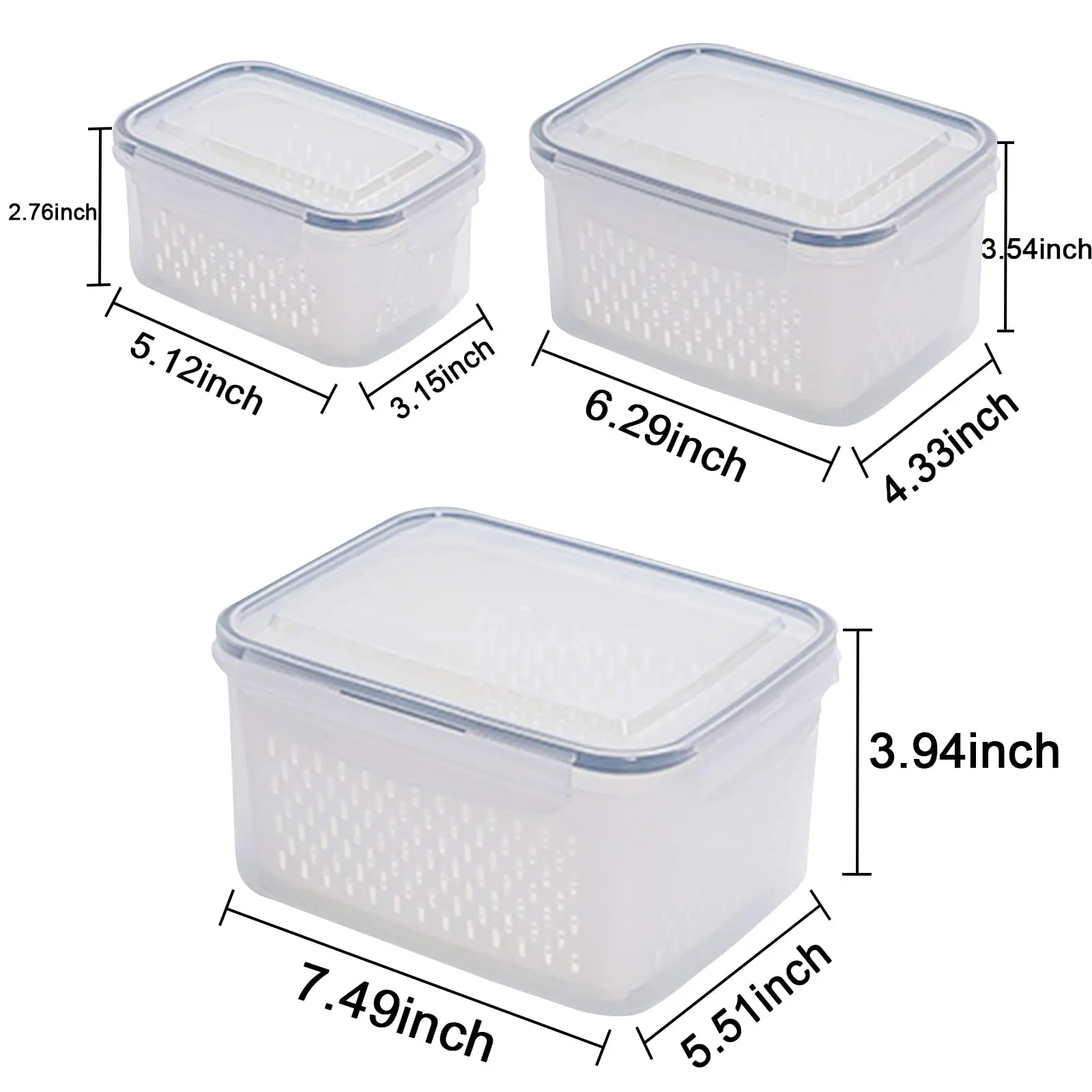 Specification: 3Pack Fridge Food Storage Container Set with Lids with Strainer Kitchen Storage Boxes Fruit Vegetable Organizer