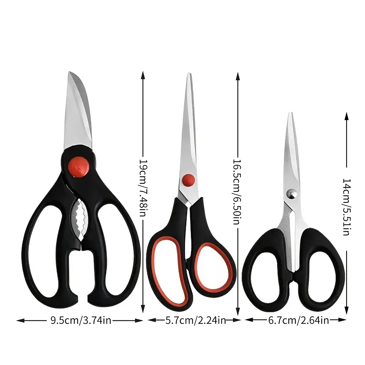Specification: 3PCS-Multi-functional kitchen scissors; household stainless steel scissors for food; chicken bone scissors.