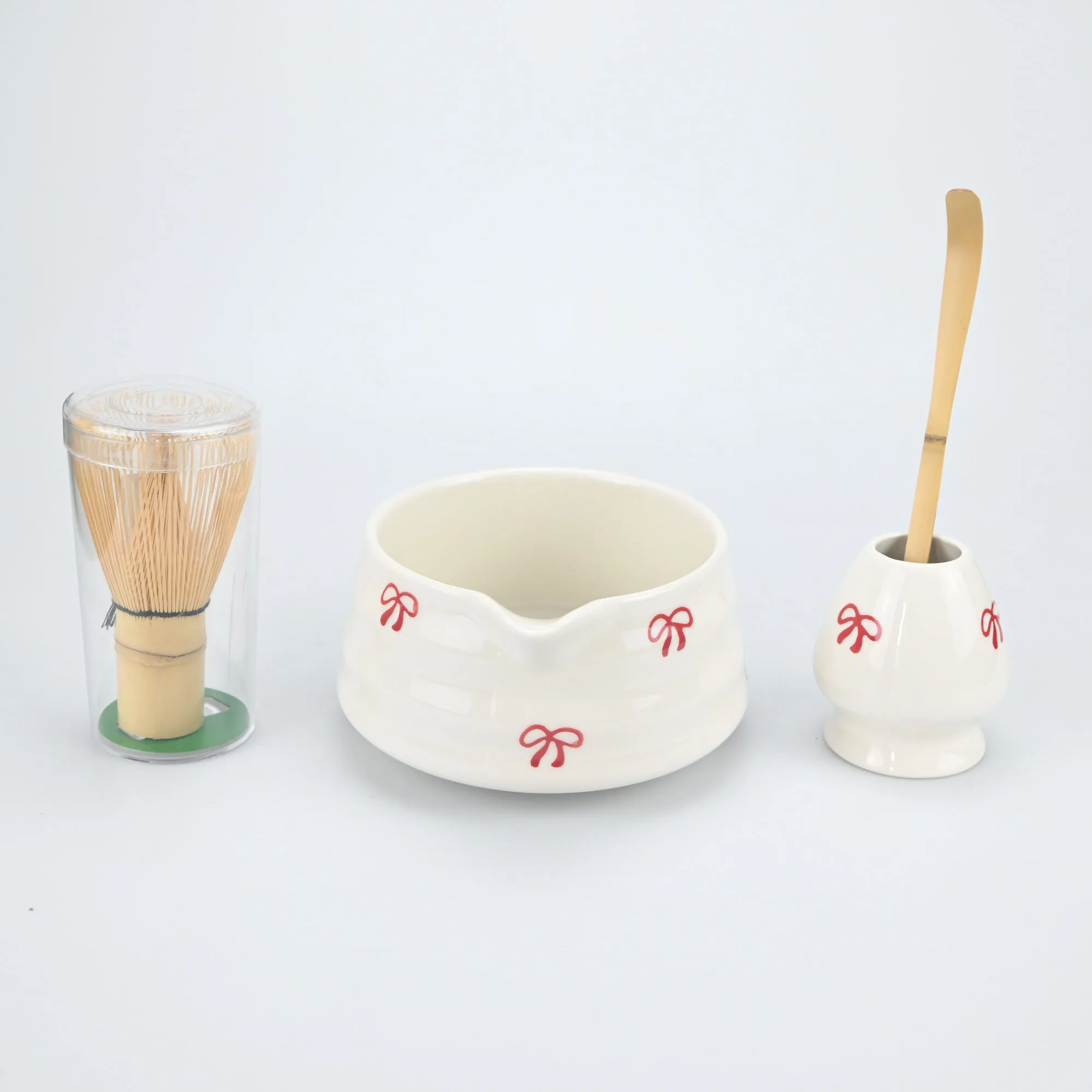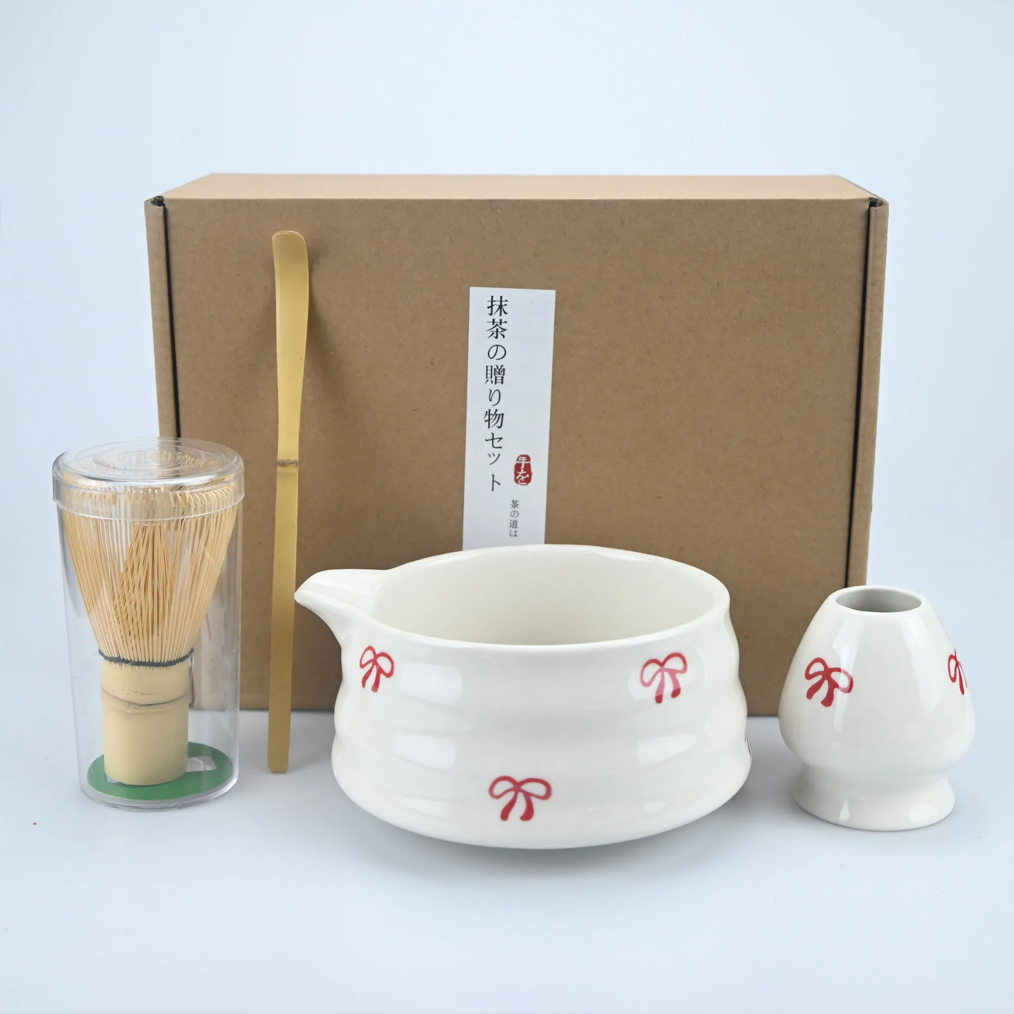 Specification: 4/5pcs Matcha Whisk Set, Cute Bow Japanese Tea Set includes Whisk Sets and Matcha Bowl with Spout, Traditional Japanese Matcha K