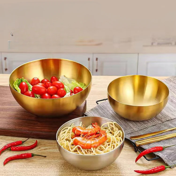 Large Capacity Stainless Steel Salad Bowls Korean Soup Rice Noodle Ramen Bowl Kitchen Food Container,Gold,20X9CM
